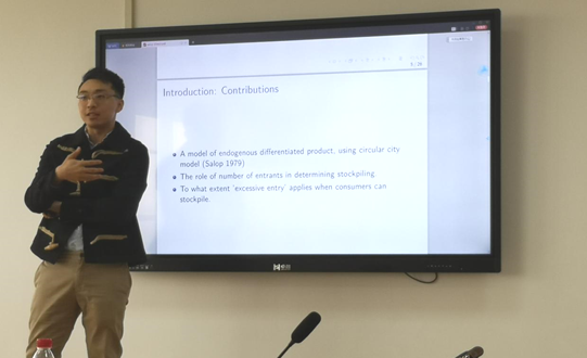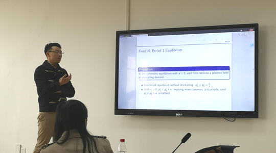 (通讯员 高菲鸿)2019年3月29日,高清无码 邀请山东大学经济研究院助理研究员李若辰作主题为“消费者储存行为与市场进入(Consumer Stockpiling and Market Entry)”的学术讲座。高清无码 曾辰航副教授及众多学生参与了本次讲座。