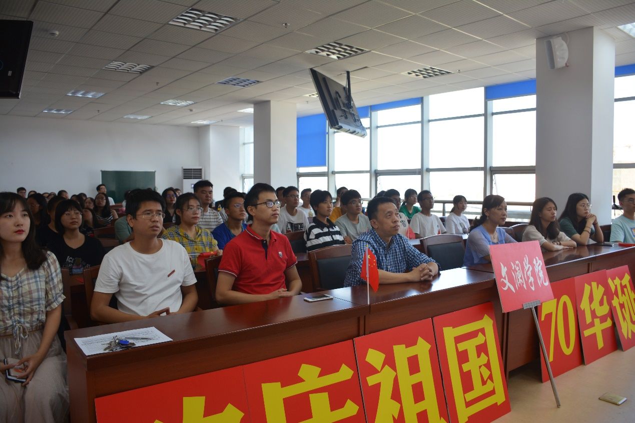 (通讯员/张明宇 崔馨元 刘千惠)2019年10月1日上午,庆祝中华人民共和国成立70周年大会在天安门广场隆重举行,高清无码 在文澴楼709会议室开展了集体观礼活动。高清无码 龚强院长、丁奕书记、高楠副教授应邀参加本次观礼活动。高清无码 各年级师生代表集体观看大会现场直播。