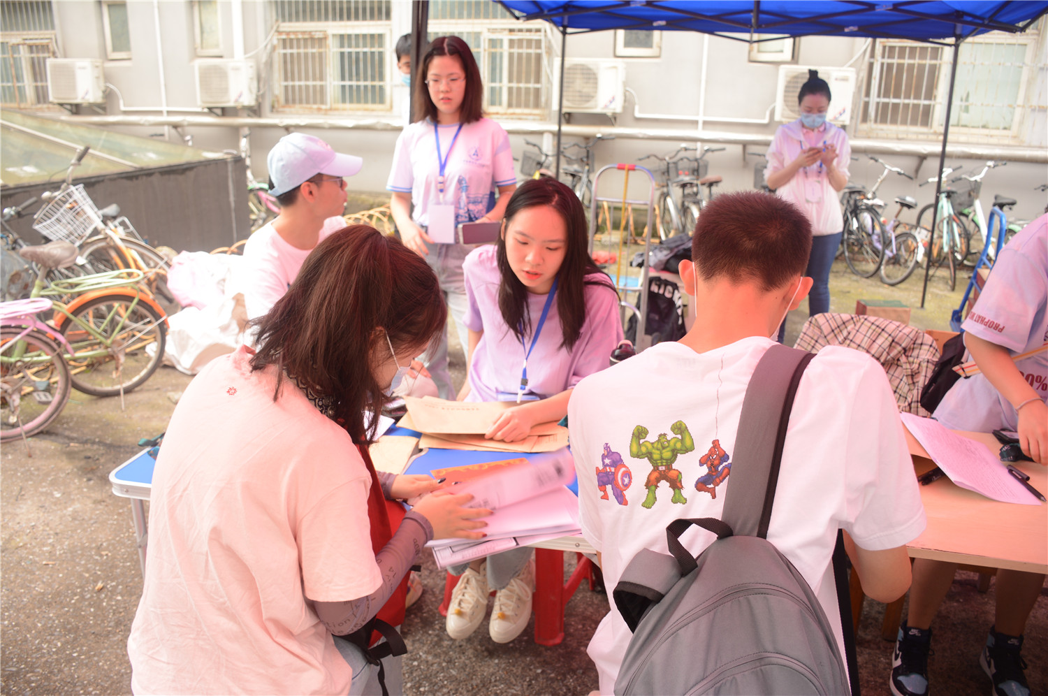 迎新点刚布置好,陆续就有2020级的新生来到迎新点报道。高清无码 迎新志愿者和团学志成员分工合作,他们早早地搭好帐篷,佩戴好工作证,展示了高清无码 良好的工作风貌。团委的成员分成两组,分别负责2020级本科新生和第二学位新生的报道。报道时,新生需要带上自己的录取通知书、身份证复印件等重要资料,随后他们会拿到自己的校园卡以及寝室钥匙,在学院迎新志愿者的引导下来到自己的宿舍。报道的整个过程都会有机动人员在一旁帮助新生解答疑惑,确保每一位新生在进入高清无码 的第一天就感受到家庭般的温暖。