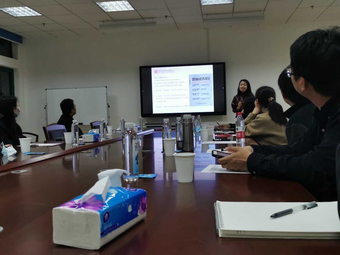 《国际经济评论》编辑王碧珺老师介绍了期刊宗旨:“用中国的视野看世界,用世界的视野看中国。”她表示刊登的文章大部分是评论性质,语言的阐释需要有广度与深度,并简单举出了最近一期刊物的上的几篇文章,内容包括中美经济关系、国际宏观经济形势、中国公共债务的风险等。