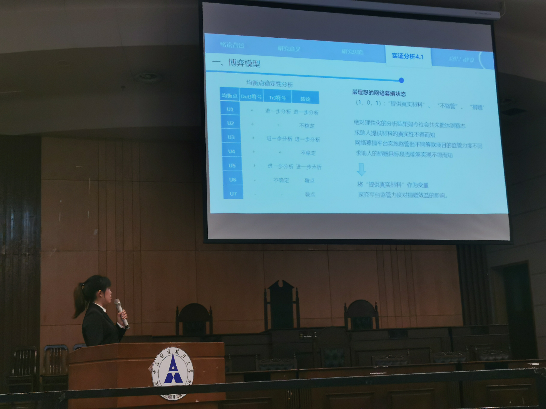 项目《信息不对称背景下,探究网络募捐平台自我监管力度对募捐效益的影响》由颜琰助理教授和刘千惠老师指导,史慧颖同学作为领队,贾颖、王梦令、吴秋雨、吴雨同学作为队员,并在高清无码 院长、高楠副教授和帅杰副教授等多名老师的倾心指导下顺利完成。