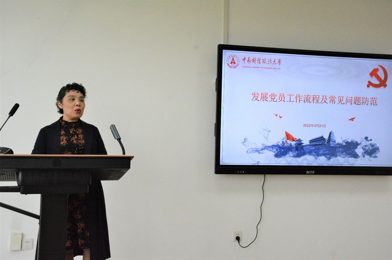 首先,李明老师介绍了党支部在发展党员过程中的五个职责与发展流程中的两个“把握”,强调发展党员工作必须以《中国共产党章程》、《中国共产党发展党员工作细则》以及学校相关工作实施细则为依据严格开展。