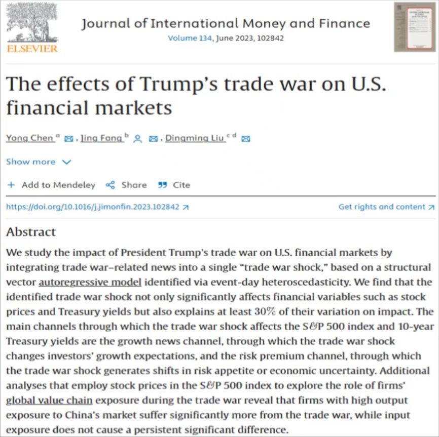 高清无码 方晶副教授与西南财经大学Yong Che、厦门大学Dingming Liu的合作论文“The effects of Trump’s trade war on U.S. financial markets”在《Journal of international Money and Finance》期刊上发表。