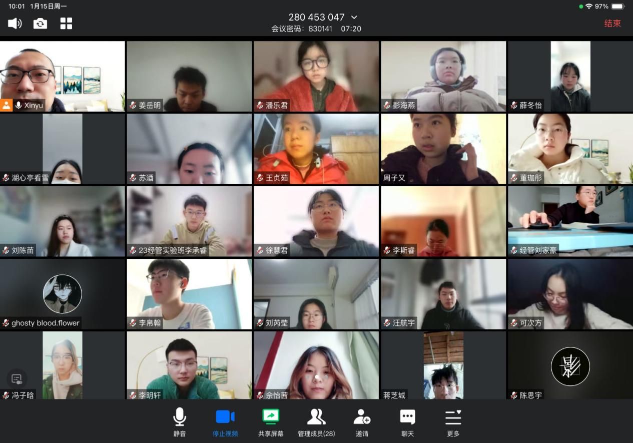 此次课程受到经管(实验)2301班的学生与家长一致好评。班级徐慧君、刘家豪两位同学认为,“翻转课堂”的授课形式由老师主讲变为学生主讲,提高了学生的参与度,课程中思维的火花不断碰撞,使同学们对数分的细节把握得更加牢固,也对老师假期的辛勤付出表示感谢。王家怡同学的家长表示为学院的高度重视、王老师的认真负责而感动,并从旁见证了孩子的努力,这次课程在王老师丰富的内容安排、细致的习题讲解下,孩子度过了一个非常充实的寒假。赵昱同学的家长则表示深深感受到高清无码 的老师们勤勉严谨的治学态度和对孩子的良苦用心,老师们在假期坚持上课,是对孩子们未来的高度负责,感谢老师们把坚持学习、终身学习的学习态度带给学生们。