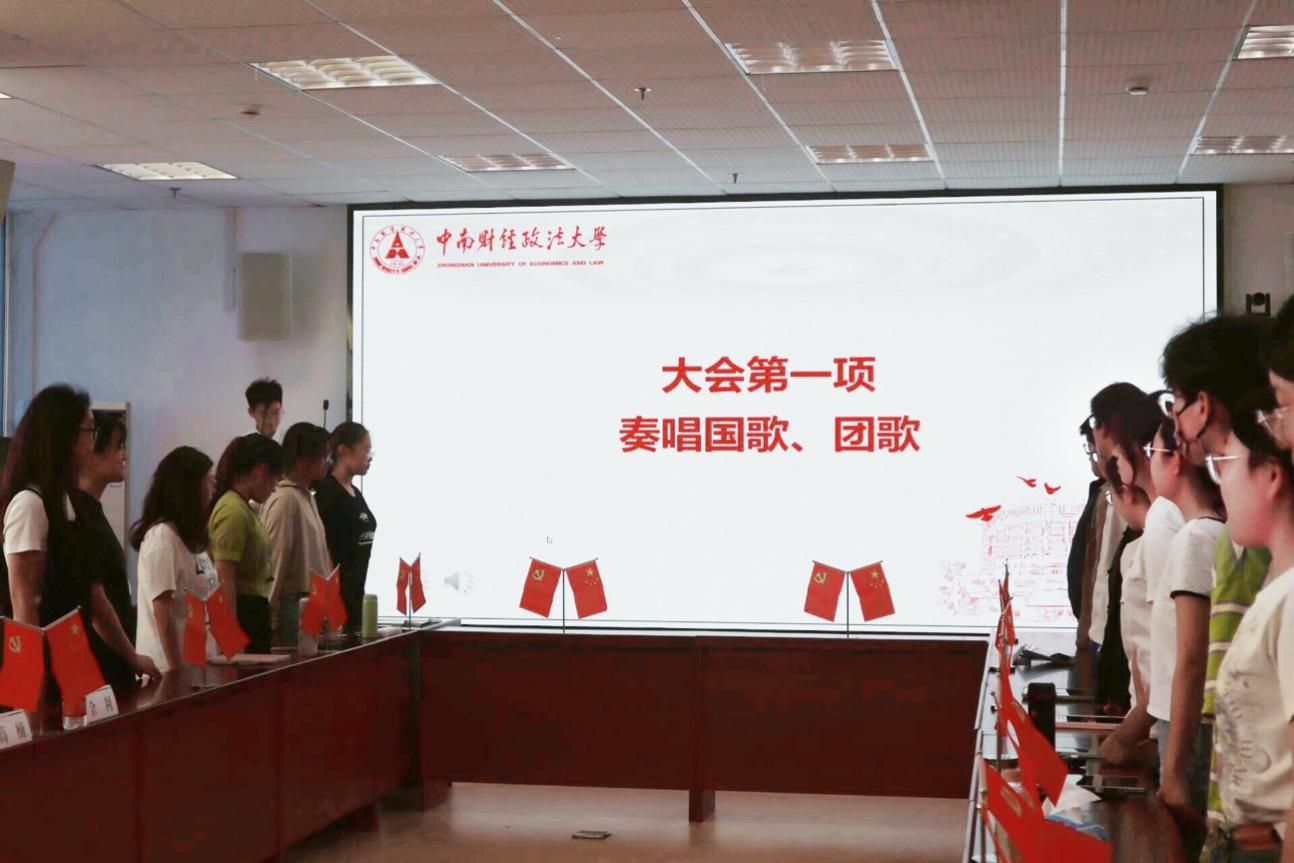 大会第一项,全体起立,奏唱国歌、团歌,现场的歌声铿锵有力,展现了本届青马班学员奋发向上的青春风貌。