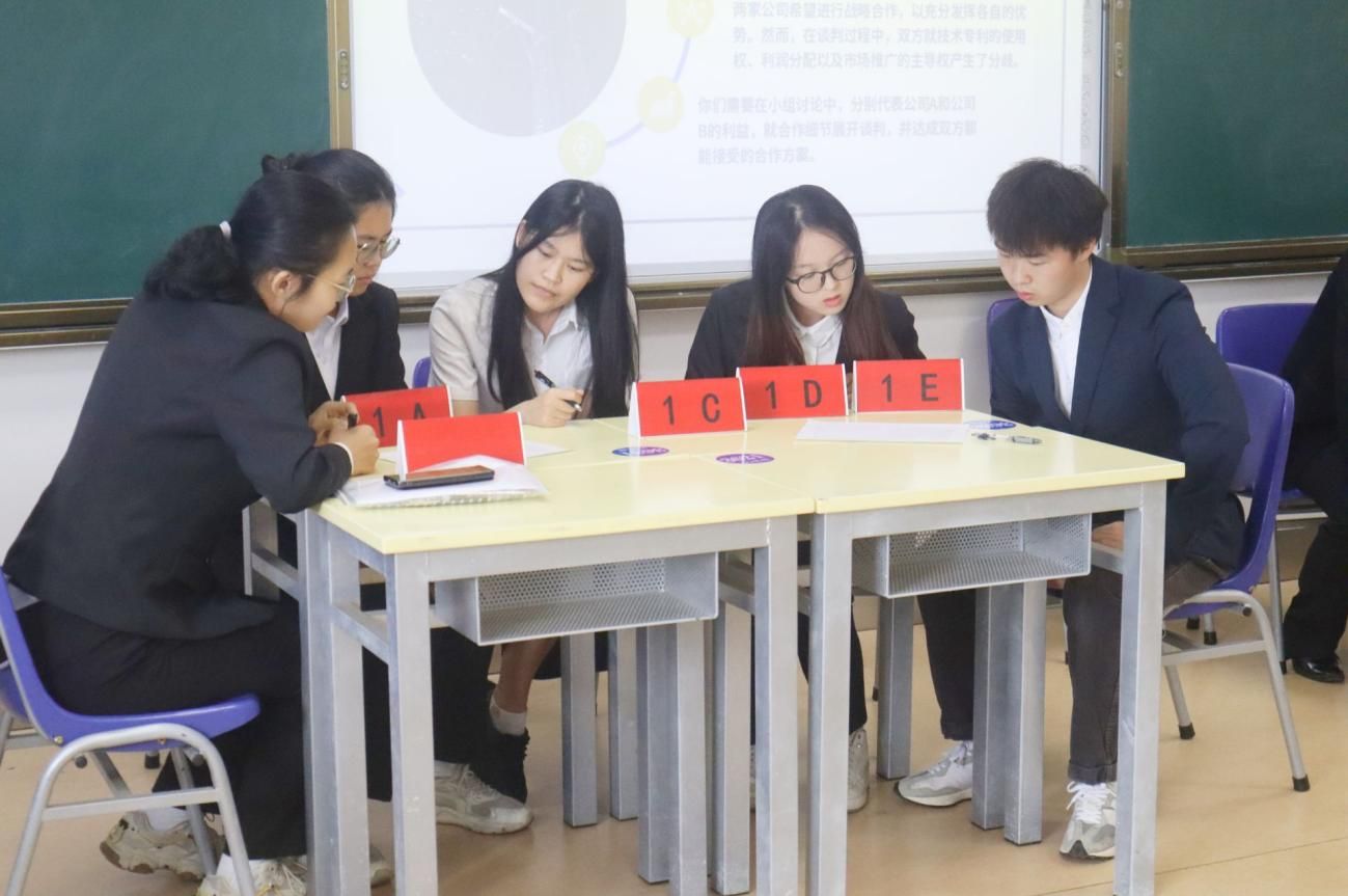 半决赛采用了无领导小组讨论和模拟公司谈判。经过抽签,20名参赛选手被分为两组,每组内再分为两队。在无领导小组讨论环节,选手们积极发言,各抒己见,相互补充,共同为团队寻找最佳方案,充分展现了他们的活力与才华。随后,各小组内的队伍进行了模拟公司谈判。在谈判过程中,双方选手条理清晰地阐述己方观点与诉求,既自信又富有礼貌,大方得体地展现了自己的风采。经过双方的共同努力,最终达成了协议,为本次半决赛画上了一个圆满的句号。