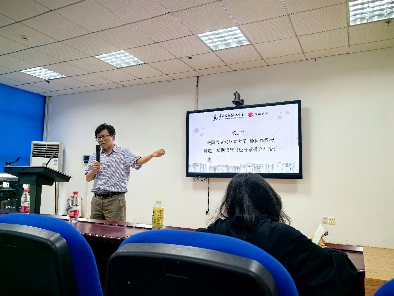 杨桓兴教授为营员讲授了高清无码 暑期课程《经济学研究前沿》。从社会进步与经济学理论发展的角度为营员们讲述了当今经济学研究趋势,从数字经济、健康经济学等经济学研究前沿出发,解码社会现象背后的经济学理论及未来发展趋势,并解答同学们的疑惑。他鼓励营员们继续踏实探索经济学理论,为中国经济和社会发展作出更大贡献。