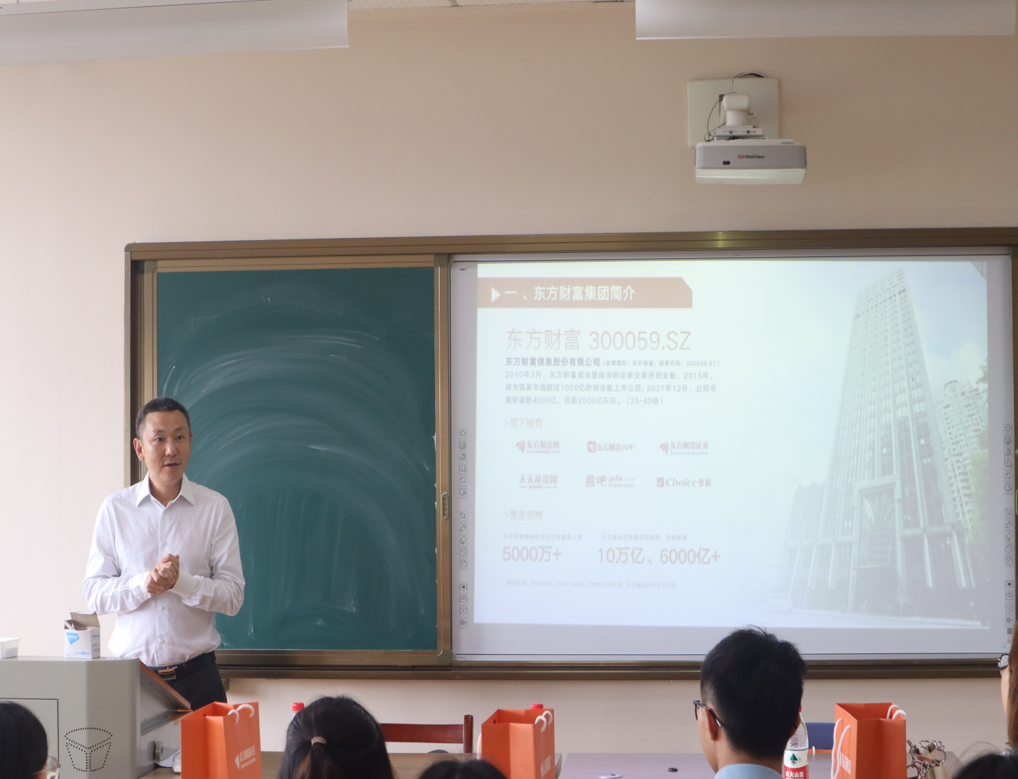座谈会结束后,东方财富证券湖北分公司领导给同学们讲授了一堂职业生涯规划课。高清无码 学生工作办公室主任余利主持交流会。首先,东方财富证券湖北分公司袁立华总经理讲话。袁经理向同学们介绍了证券公司的组织架构以及东方财富的发展历程,强调了科技金融这一关键词,并简述自己对证券行业的认知,幽默风趣,言简意赅,让文澜学子受益匪浅。