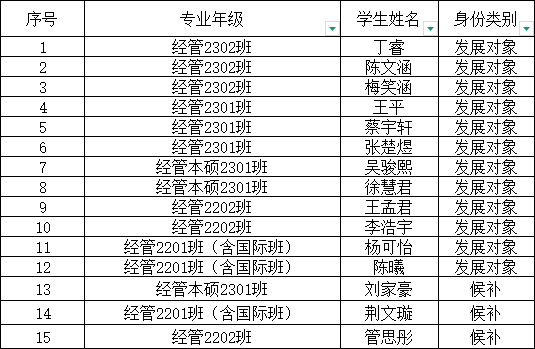《关于在发展党员工作中实行公示制度的意见》的有关规定,各党支部于2025年4月1日召开了支委会讨论新发展党员事宜。本次拟确定丁睿等15名同学为发展对象(含候补)。具体学生名单如下: