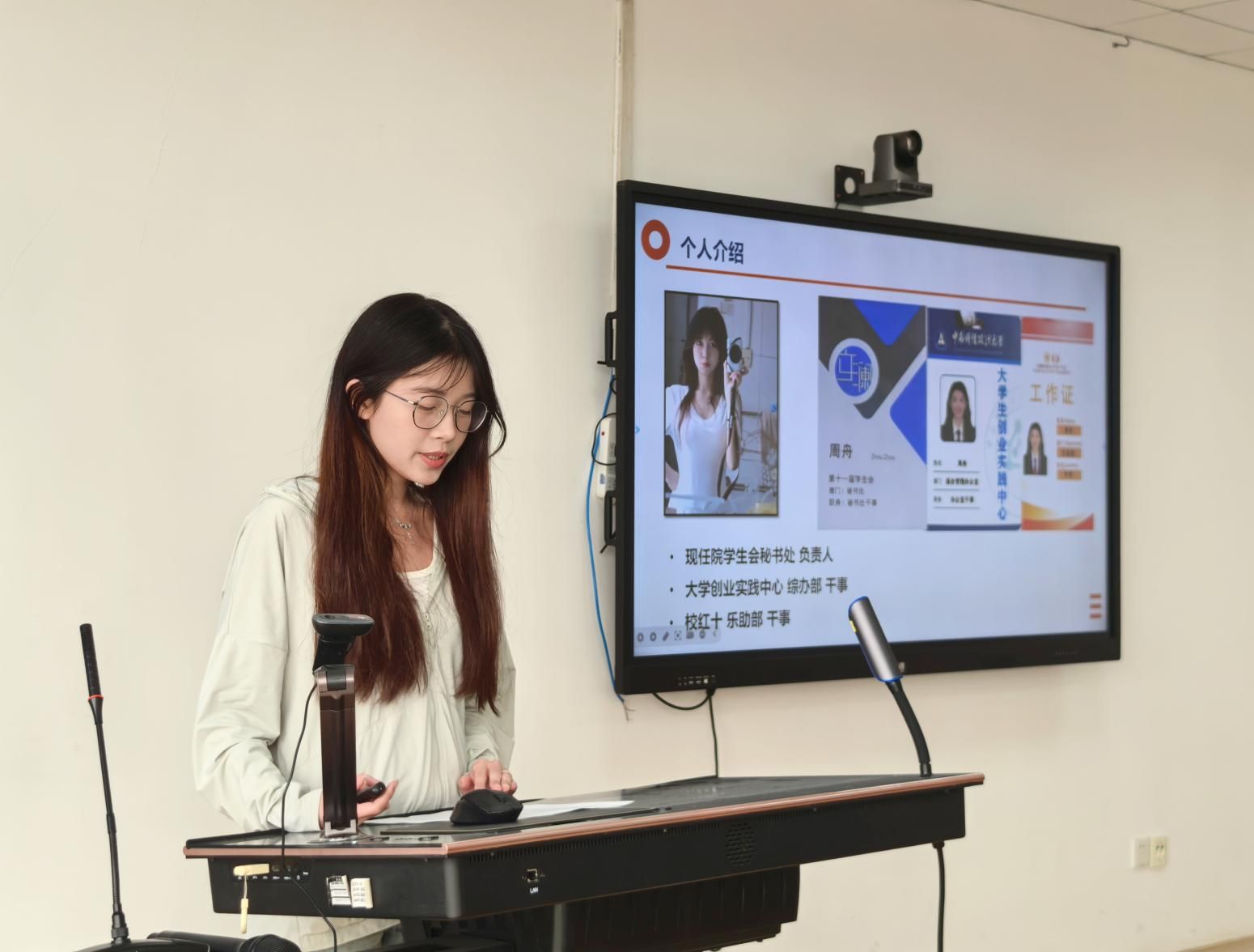 最后,院团委书记戴士崴老师发表讲话。讲话总结了过去一年的可喜成绩,鼓励大家继续在团学志大家庭共同努力,做求真务实的践行者、破立并举的革新者、知行合一的引领者。