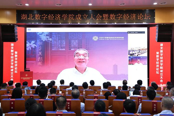 北京大学林毅夫、中国人民大学刘守英、湖北经济学院方洁向大会致辞,他们对湖北数字经济学院成立表示祝贺,提出学院要引领湖北及全国数字经济科研方向,推动数字时代下湖北及全国的数字产业化与产业数字化进程,进而提升新质生产力,为高质量发展和中国式现代化贡献力量。