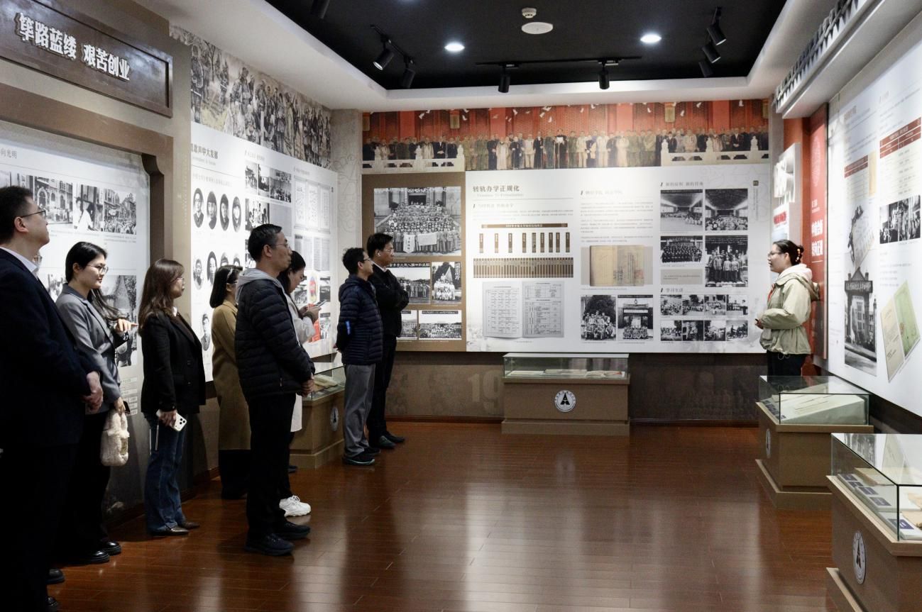 活动伊始,全体党员重温入党誓词,面向党旗庄严宣誓。随后,在讲解员的引导下,大家参观了校史馆,回顾学校七十余年的发展历程,了解学科建设服务国家战略的重要成果,深刻感悟“博文明理,厚德济世”校训的精神内涵。