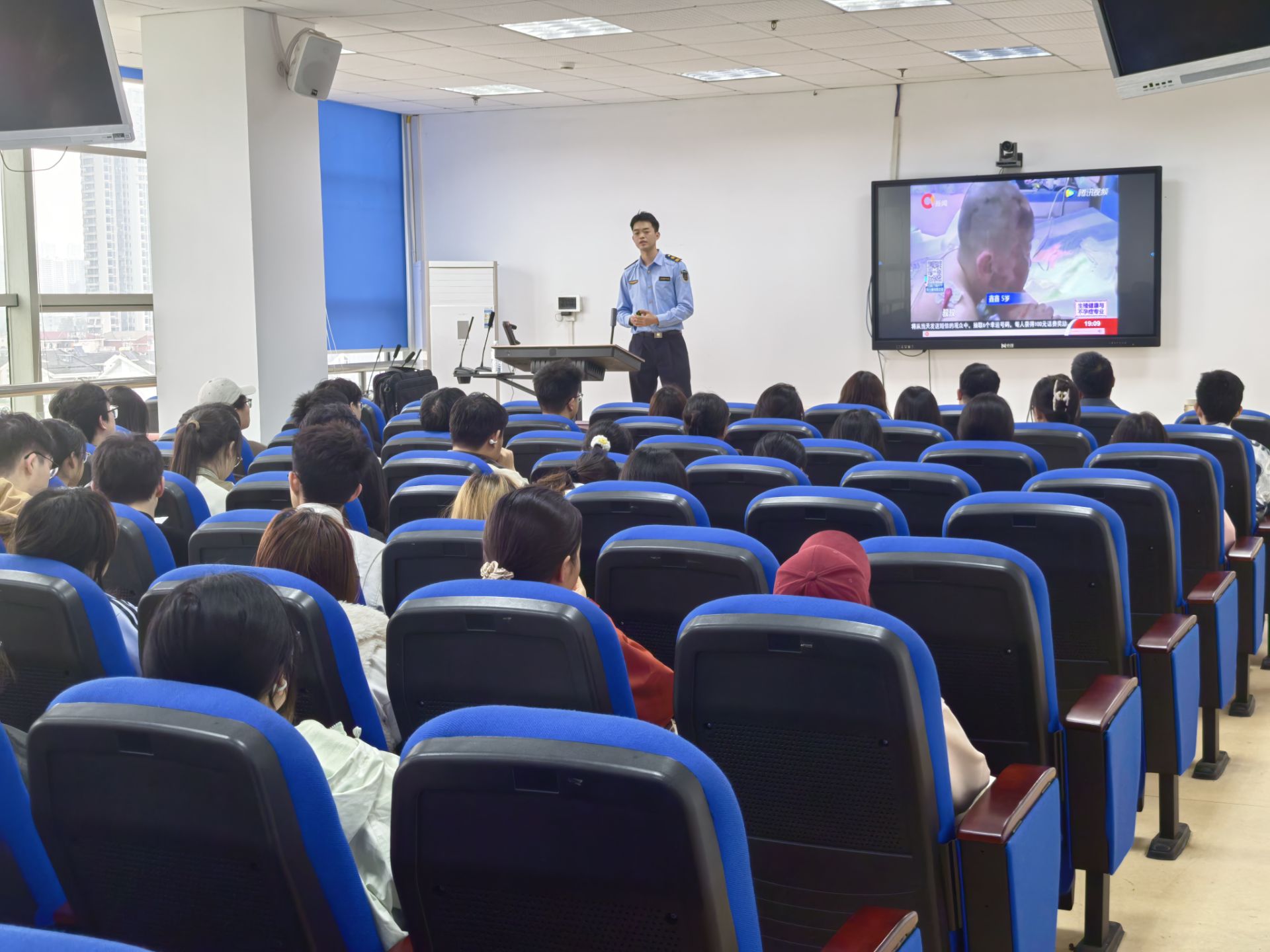 孙晨警官围绕宿舍消防安全开展专题宣讲,用专业视角为参会人员普及消防安全知识。他结合真实火灾案例,重点剖析违规使用大功率电器、长时间不拔充电插头等行为的严重危害,以案例警示人、以事实教育人,着重强调了消防安全预防的重要性和必要性。同时,孙警官系统讲解火灾初期应急处置、火场逃生技巧及消防设施使用方法,切实提升参会人员的消防意识与应急能力。