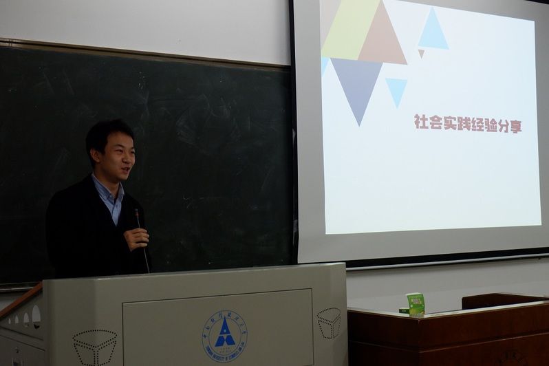 首先开展活动第一项:社会实践经验分享,由三位获得校级立项的15级学长学姐为17级新生讲述社会实践亲身体验。吴婉莹率先登场,陈述博文大创需要考虑的事项,以十九大习近平总书记重要讲话思维导图为例,为同学们分析寻找课题切入点的视角。黄如瑶就组队、选题、建模、实施等各个环节详细地向大家分享博文杯立项的经验。她鼓励大家勇于尝试,勇于寻求老师的帮助,做到坚持,保持适度,引发场下阵阵热烈的掌声。不同于前两位同学的轻言慢语,李赫然爽朗而富有节奏感地讲述把同学们带到了他假期在雄安新区等地的社会实践体验中。党的领导下新农村新城镇翻天覆地的变化,令每一位同学愈发坚定了“跟党走”的理想和信念。