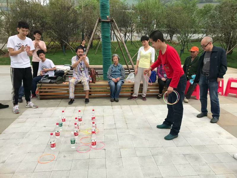 紧接着,我们利用简单的道具,开展了生动有趣的小游戏——套圈和夹乒乓球。这些游戏既有趣味又富有挑战性,让同行的老人们都跃跃欲试,很多之前没有在才艺表演中亮相的老人此刻似乎找到了自己的“用武之地”,开始给我们大秀身手。广场上,绿草茵茵,笑语盈盈。