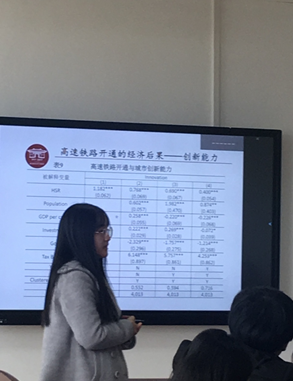 中南财经政法大学经济学院博士生刘培也带来了题为:“人力资源配置、产业结构调整与经济增长效率——基于地级市面板数据分析”的精彩讲座。报告人围绕各自研究领域也做了精彩汇报,在报告人展示论文的同时,台下的与会者们也非常地认真投入,积极地提出疑问或者建议,现场氛围十分活跃。