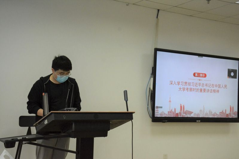活动第二项,深入学习习近平总书记在中国人民大学考察时的重要讲话精神。考察时,习近平总书记强调“坚持党的全面领导传承红色基因扎根中国大地,走出一条建设中国特色世界一流大学新路”,并寄语新时代青年不负韶华,不负人民,在青春赛道上奋力奔跑。随后,党员代表分享了学习心得,立志成长为堪当民族复兴重任的时代新人,把为祖国为人民的抱负贯穿到学业、事业当中。