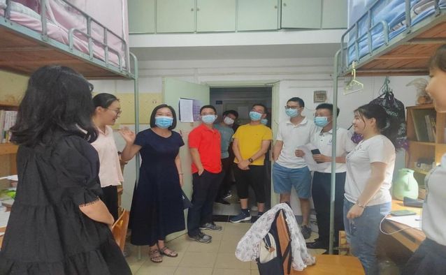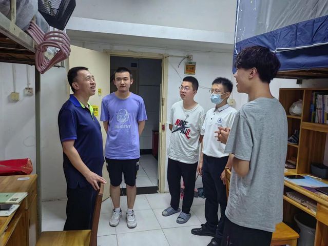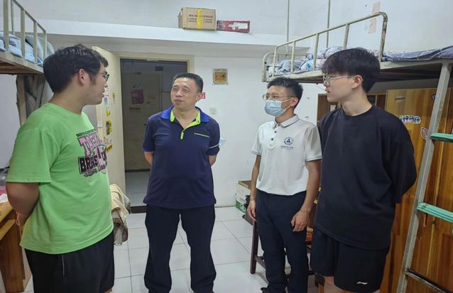 “家是哪里的?”“餐厅饭菜是否可口?”“有什么体育爱好?”在环湖6栋男生宿舍,学院领导老师深入每一间寝室悉心询问同学们的学习生活情况。聊天中,龚强院长勉励新同学要珍惜大学时光,尽早做好规划,认真刻苦学习,努力拼搏进取。学院老师们提醒新同学增强安全意识,谨防网络电信诈骗,保护好人身财产安全。同时,学办主任余利老师还特别叮嘱新同学要注意疫情防护,严格遵守学校各项防疫要求,按规定做好核酸检测,确保生命健康。