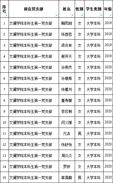 为了增强发展党员工作的透明度,接受党内外群众的监督,更好地保证发展党员的质量,根据《中国共产党章程》、《中国共产党发展党员工作细则(试行)》和我校《关于在发展党员工作中实行公示制度的意见》的有关规定,我支部于2022年6月24日召开了支部大会讨论预备党员发展事宜。现将我院本次拟确定为预备党员的学生名单公示如下: