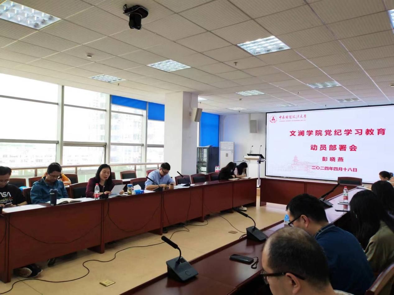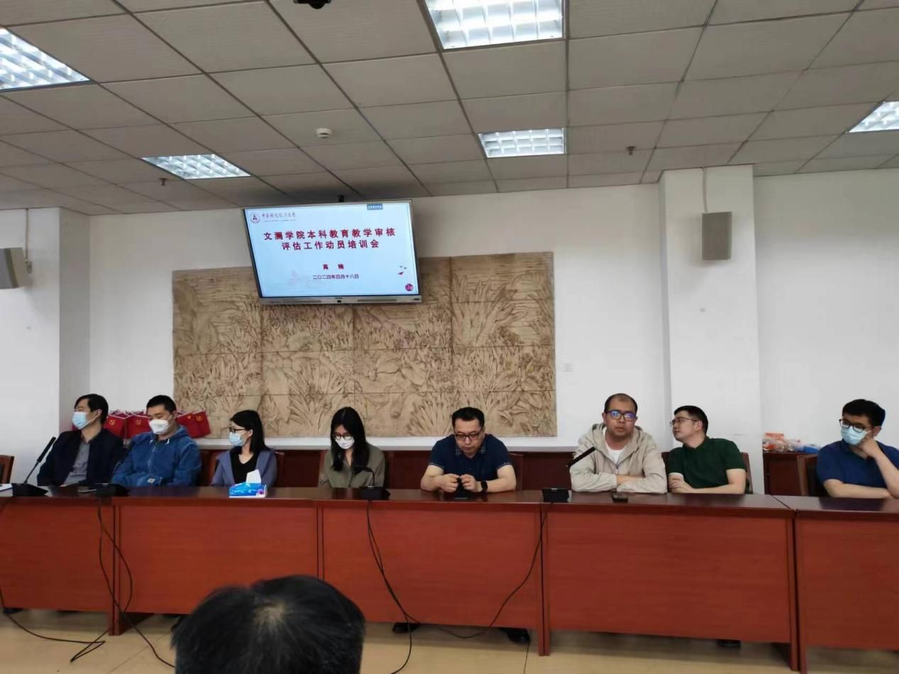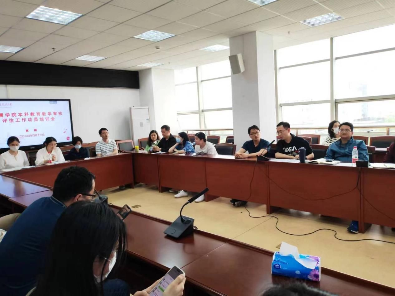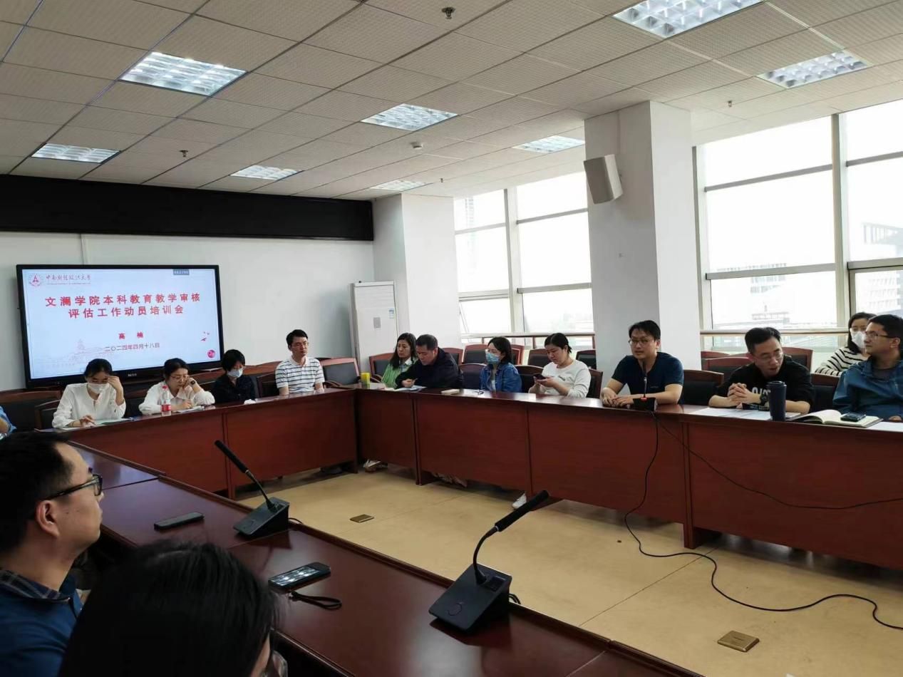 2024年4月18日下午,文澜学院全体教师在文澴楼709召开文澜学院本科教育教学审核评估动员部署会。