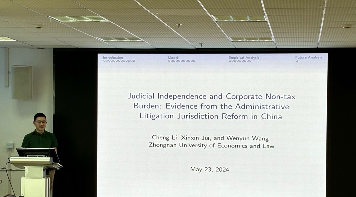 2024年5月23日,由中南财经政法大学文澜学院主办,北京大学-中南财经政法大学新结构经济学研究中心承办的学术交流活动在文澴楼709教室顺利举行。文澜学院李程老师与学院老师围绕“Judicial Independence and Corporate Non-tax Burden: Evidence from the Administrative Litigation Jurisdiction Reform in China”为主题展开学术交流。本次学术交流由荣昭老师主持,文澜学院众多师生参加了此次活动。