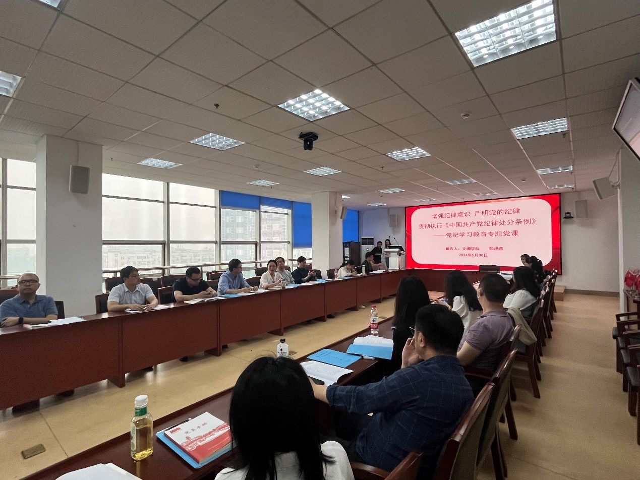 为推进我院党纪学习教育走深走实,增强全体党员廉洁自律意识,推动“三会一课”组织制度基层落实,5月30日上午,学院新结构经济学师生党支部、行政党支部在文澴楼709会议室开展了5月支部主题党日活动。本次党日活动由文澜学院新结构经济学师生党支部、行政党支部全体党员、文澜学院全体教师共同参加,师生党支部书记方晶主持本次活动。