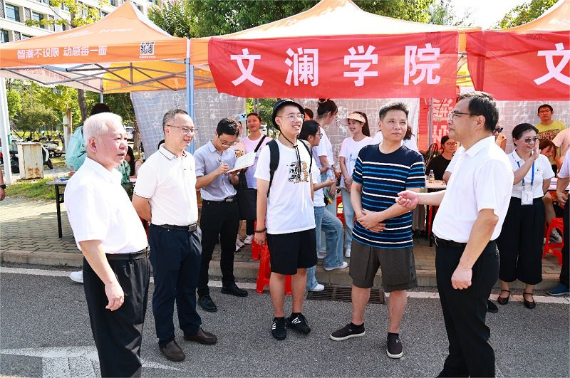 2024年9月1日,文澜学院迎来了来自五湖四海的2024级新生,学院党委书记彭晓燕老师、副院长帅杰老师、副院长高楠老师、院长助理方晶老师、学院党员教师以及全体迎新工作人员在南湖校区迎新点期待着新生的到来。迎新过程中,中南财经政法大学党委书记侯振发、校长杨灿明、校党委副书记陈狮及其他校领导们莅临现场,看望慰问迎新工作人员与新生们,关切询问学院迎新工作开展情况,并与在场的新生家长友好交流,对新生们的到来表示殷切的期盼。