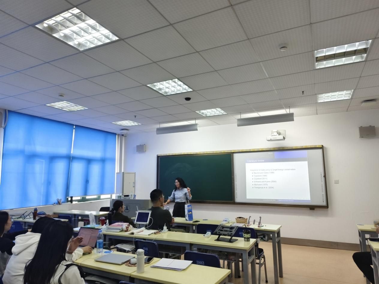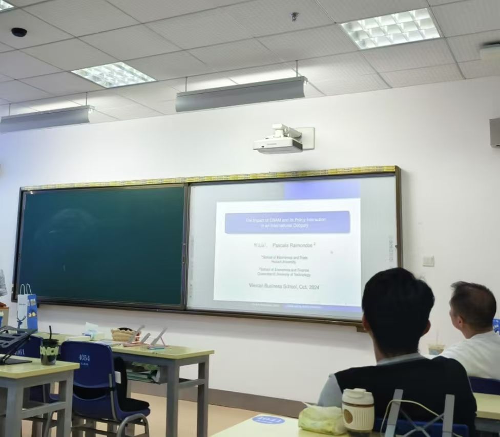 刘懿老师向大家介绍了她和合作者最近的研究方向和相关结果。讲座开始她联系现实和已有研究对当前国际环境下各国碳政策进行了介绍,减少碳排放、碳达峰等低碳政策已经是各国发展的同时非常重要的部分。在国际贸易中,对于单位贸易产品所产生的碳排放量成为各国进出口时的重点关注,并且使用关税等行政手段来应对。刘老师在研究中建立了一个全球寡头市场模型,分析碳边境调节机制(CBAM)在减少碳排放泄漏和提高参与国家的经济福祉方面的长期与短期效应。在贸易自由化的环境中,CBAM能够显著降低碳排放泄漏,并且增加实施CBAM地区以及受其影响国家的福祉。但是,当存在进口税的情况下,CBAM的影响会更加复杂,可能会减少实施地区的经济福祉,而增加受影响国家的福祉。总的来说,不管具体情况如何,CBAM的推行都能有效地减少碳排放泄漏,进而提升全球的经济福祉。在报告结束后,参与的师生们踊跃提出问题,刘懿老师就模型的构建细节和政策的深远影响等方面进行了详尽的探讨。这些研究成果在学术上具有重要价值,我院师生在交流后均表示对全球气候变化和相关应对策略的有了更加深刻的认识。