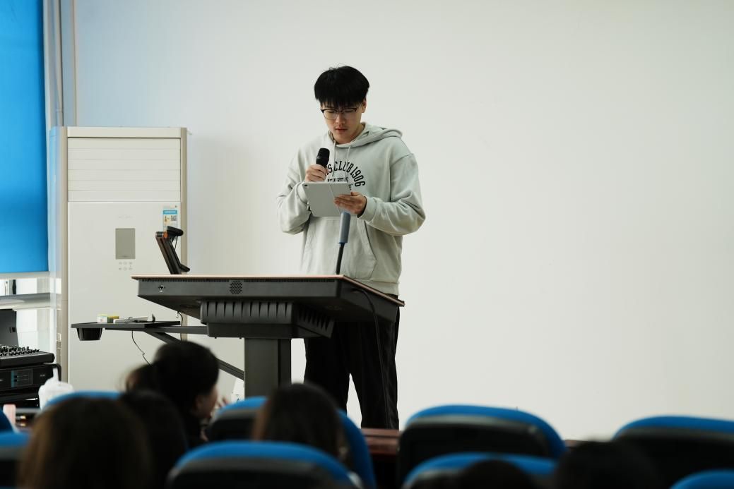 曾任学院学生会学术部部长、主席团轮值主席的陈思奕同学,结合自身工作经历,分享学生干部能力培养方法、高效工作技巧及学业与工作平衡经验,提出“沟通是解决学生工作突发问题核心手段”的实践心得。