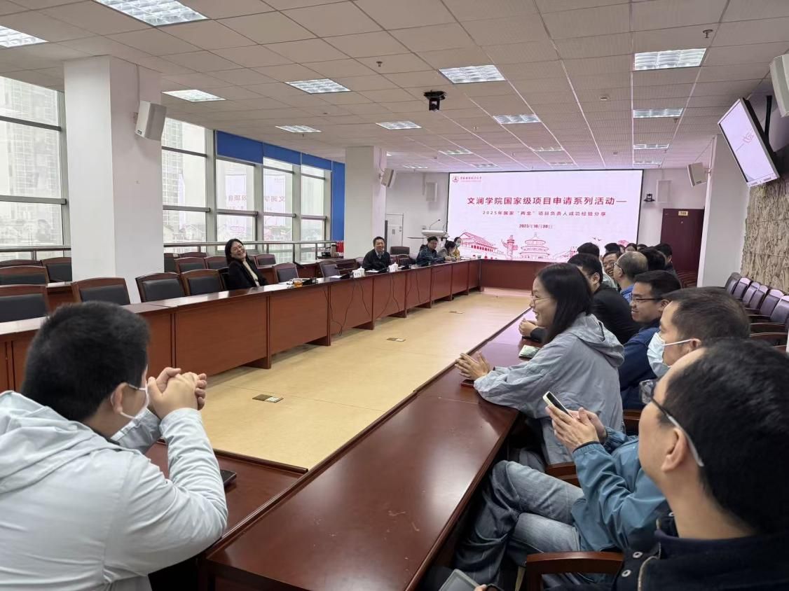 2025年10月30日,由文澜学院主办的“国家级项目申请系列活动”在文澴楼709会议室顺利召开。此次讲座邀请了2025年获批国家“两金”项目的负责人进行经验分享,讲座由帅杰老师主持,文澜学院全体教师参加了本次讲座。